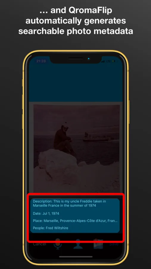 •Built in voice recognition to help you tag your images. Simply describe your photo your own way, and QromaFlip's Natural Language Tagging engine will automatically generate tags for Date, Location and People in your photos. this industry standard photo metadata will be embedded directly into the image and is searchable by nearly every device.