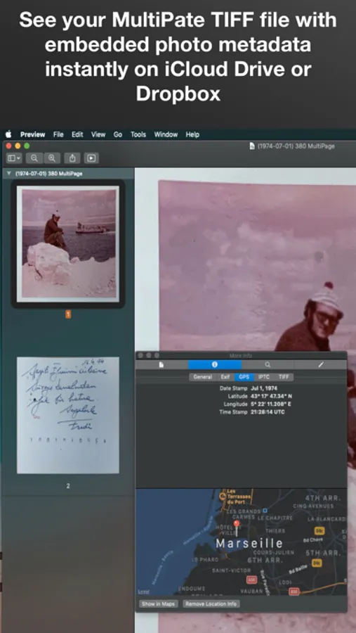 •iCloud Drive and Dropbox integration. Turn on Cloud sync, and see your completed MultiPage TIFFs almost instantly.