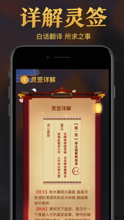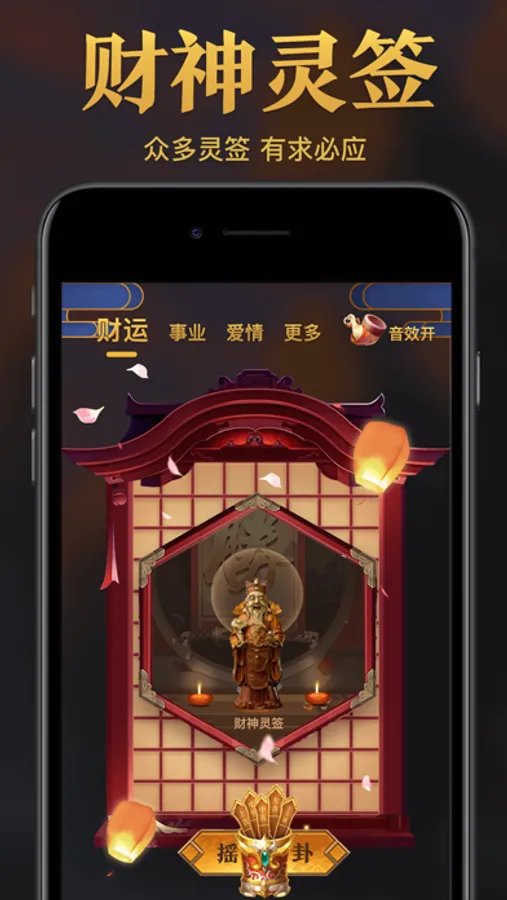 使用过程中,首先要选择对应的求签内容,并在心中默默念诵祈求的内容,摇动手机会出现结果。