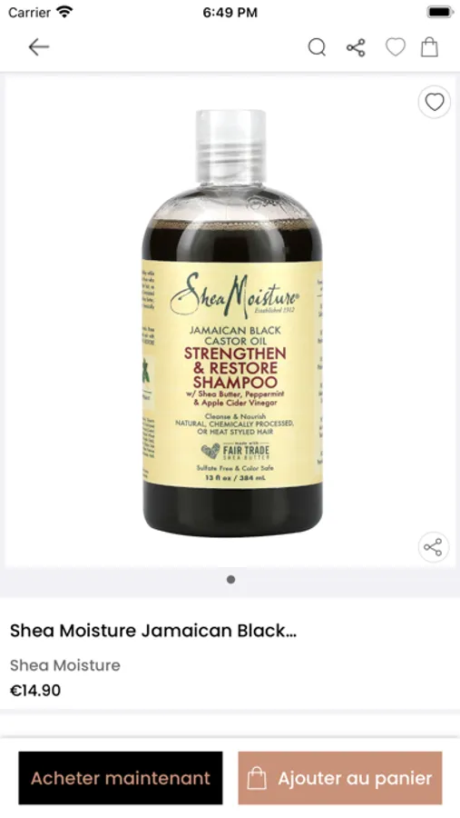 Bienvenue sur l’application ETHNOBEAUTY, grâce à notre application bénéficiez en avant-première des offres tendances et des remises exceptionnelles. Des grandes marques beauté à prix discount, c’est toute l’année sur ETHNOEBAUTY ! ETHNOBEAUTY : Application N°1 sur la Beauté Multiculturelle Faites votre shopping sur l’application ETHNOBEAUTY : Accédez à un large choix de références ! Bénéficiez de promotions exclusives ! -Accedez à tous nos produits, dont certains en avant-première sur l’appli -Retrouvez vos marques de cosmétique préférées comme Shea Moisture, Cantu, Devacurl, Curls, Novex, Creme of Nature, Red one, Fair & White, Sleek Hair, Sleek MakeUp, Xpression, Activilong, As i Am, KeraCare, Aunt Jackies, Afro Naturel, Crazy Pouss, Bounce Curl, Camille Rose, Hairfinity, Mielle Organics, Makari, Francoise Bedon, Palmer’s, kinky curly, Les secrets de Loly, Revlon, Flora & Curl, Mizani, TCB, Boostbeauty, Madame la Présidente, L’oreal Professionnel, Wahl, Moser et bien d’autres Retrouvez également les extensions capillaires et les Perruques : Large choix de Lace Wig disponible également -Des nouveautés chaque semaine ! -Enregistrez vos produits favoris grâce à la fonctionnalité liste de souhaits -Une navigation facile et fluide pour un shopping rapide en toute tranquillité ! -Paiement 100% Sécurisé -Service Client Réactif -Livraison 24/48h Téléchargez vite L’appli ETHNOBEAUTY pour ne manquer aucune promotion Merci d’utiliser l’application ETHNOBEAUTY L’équipe ETHNOBEAUTY