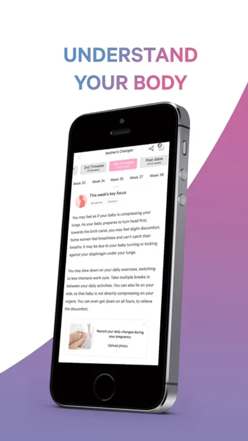 • Daily tips for you and your baby, which matches to your pregnancy and helps you to track your pregnancy on a daily basis.