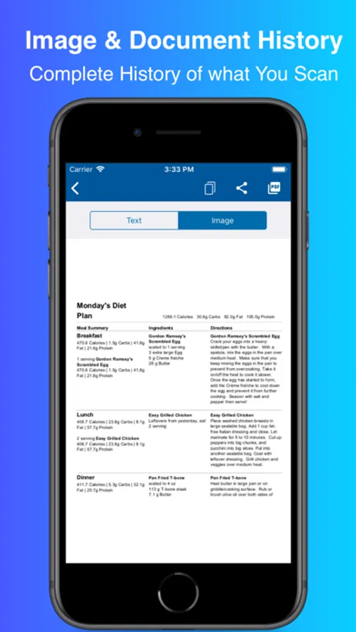 You can convert the pic to text which is saved in your media library, or you can use this text reader directly using the camera. Open the My Text OCR Scanner app, open the camera and select the text area and then this app will convert the image to word or text.