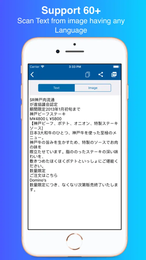 • Multi-language support - OCR images in English, Spanish, French, German, Italian and more with support for over 60+ different languages