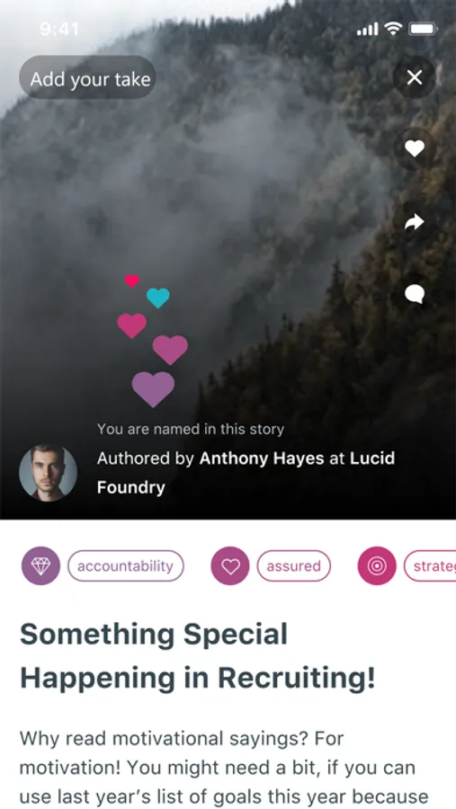 As a company, turn your client testimonials and every day internal employee stories into powerful teasers that bring people you want to work with to you. Tap words, build a story. Engage talent, inspire advocacy. Get leads, spark reviews.