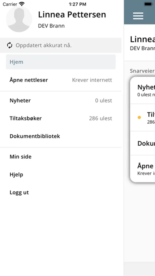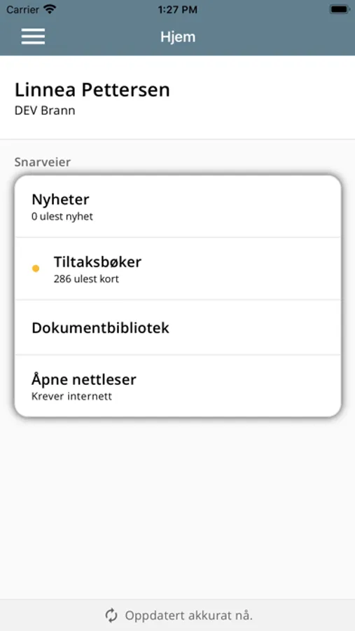 Offline tiltaksbok, nyheter og dokumentbibliotek.