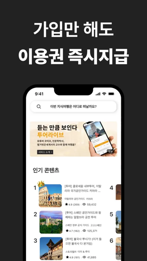투어라이브로 언제 어디서든 내가 원하는 곳에서 내가 원하는 지식과 이야기를 자유롭게 즐겨보세요.