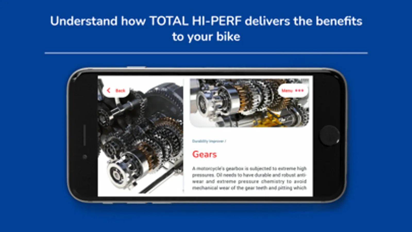 Have a look inside your motorcycle engine! TOTAL HI-PERF app targets to raise technical awareness of all motorcycle users around the world by offering them a deep dive into their motorcycles' engine. It also illustrates the advantages of lubricating each part of a motorcycles' engine.