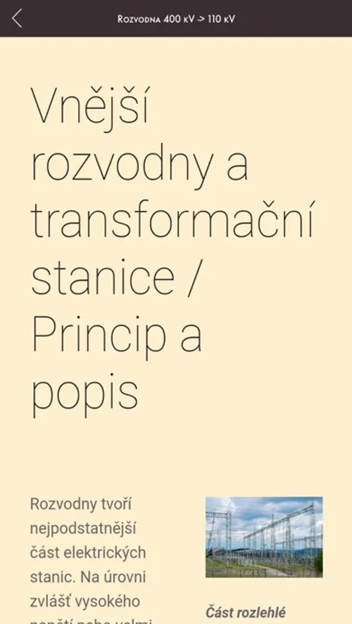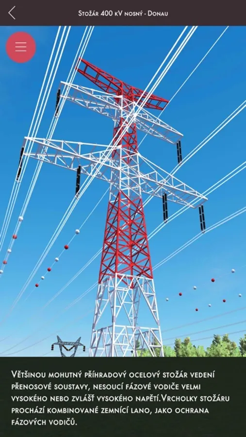 S prvky přenosové soustavy se v krajině setkáváte prakticky denně a většinou si ani neuvědomujete, že například právě vodiče přenosových vedení ve vaší blízkosti zásobují elektřinou celou oblast nebo město, ve kterém žijete. V této aplikaci se dozvíte vše podstatné o vedeních a napěťových úrovních přenosové soustavy, k čemu slouží velké výkonové transformátory v rozvodnách, jak se říká některým typům stožárů a řadu dalších zajímavých informací.