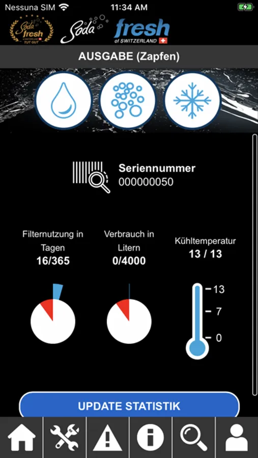 Durch Bluetooth erlaubt diese App an dem Wasserspender zu verbinden