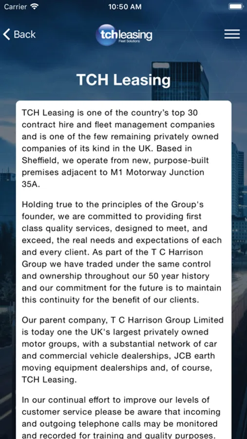 Our app brings together a multitude of useful tools for all drivers including; find your nearest car park, fuel station and charging points, even your own location as well as top tips and emergency contacts. If you are a TCH Leasing customer you also get the benefit of additional features such as our end of lease check list and milage tracker.