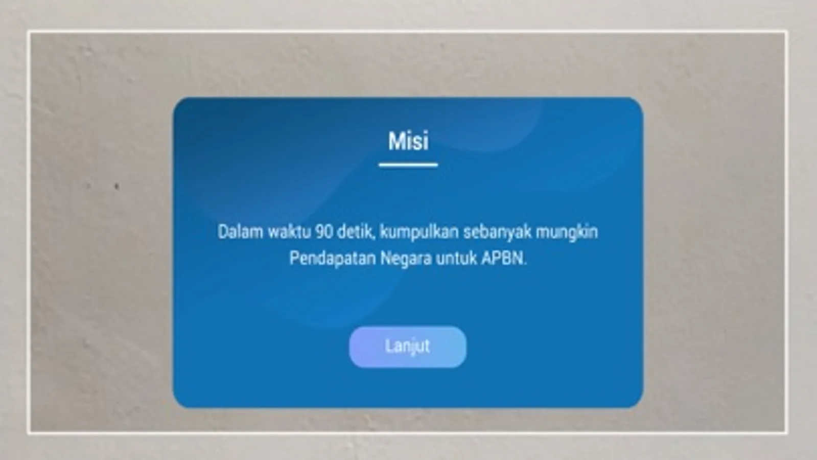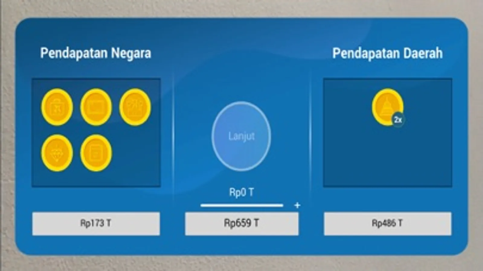 Pendapatan negara identik dengan pajak. Namun, sumber pendapatan negara tidak hanya pajak. Sumber pendapatan negara berasal dari tiga sektor, yaitu penerimaan perpajakan, penerimaan negara bukan pajak, dan penerimaan hibah. Dalam aplikasi ini, Kamu akan menjumpai beberapa macam sumber pendapatan negara. Selain itu, Kamu juga akan menjumpai beberapa jenis sumber pendapatan daerah. Kamu mempunyai misi mengumpulkan sumber pendapatan negara sebanyak mungkin untuk membiayai tugas-tugas rutin negara dan pelaksanaan pembangunan.
