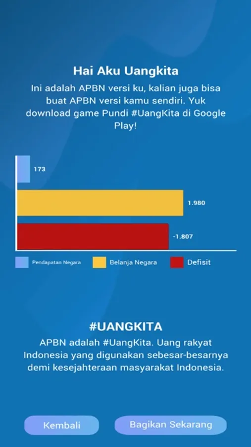 Pundi #UangKita adalah game berbasis Augmented Reality yang bertujuan untuk mengenalkan pendapatan negara sebagai komponen dari Anggaran Pendapatan dan Belanja Negara (APBN) kepada masyarakat.