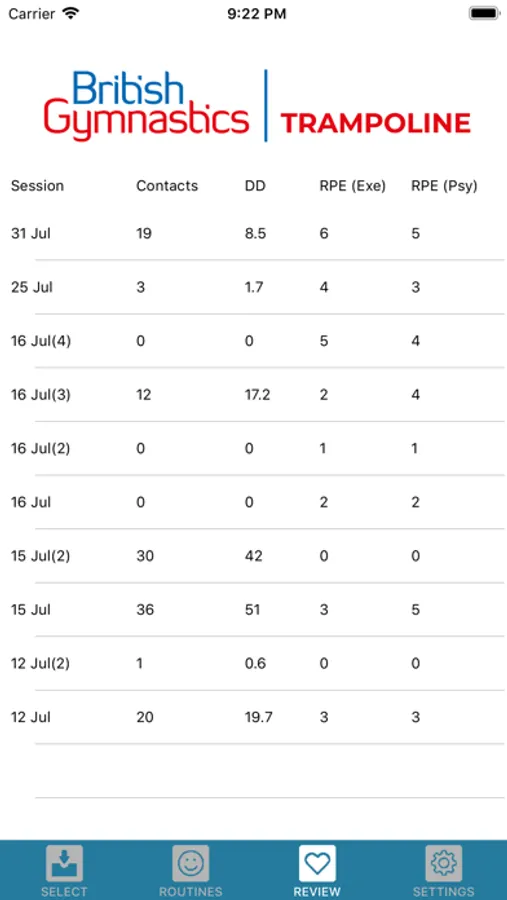 Gymnastics Training Diary