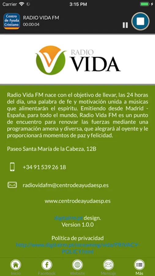 Radio Vida FM nace con el objetivo de llevar, las 24 horas del día, una palabra de fe y motivación unida a músicas que alimentarán el espíritu. Emitiendo desde Madrid - España, para todo el mundo, Radio Vida FM es un punto de encuentro para renovar las fuerzas mediante una programación amena y diversa, que alegrará al oyente y le proporcionará momentos de paz y felicidad.
