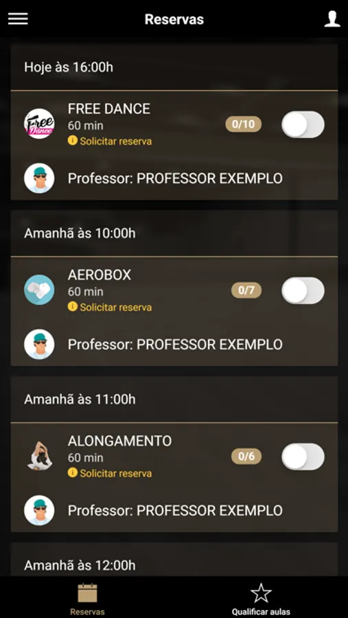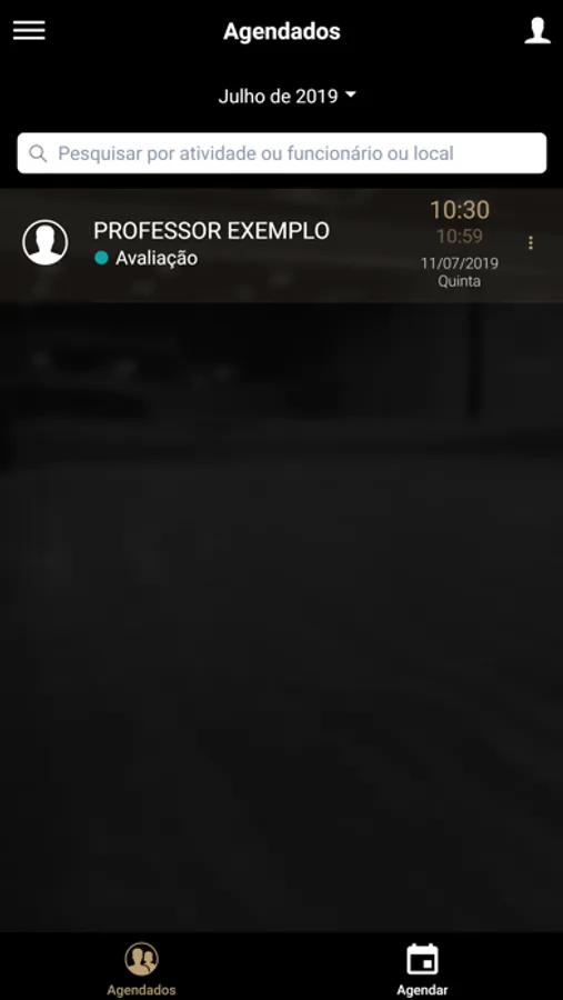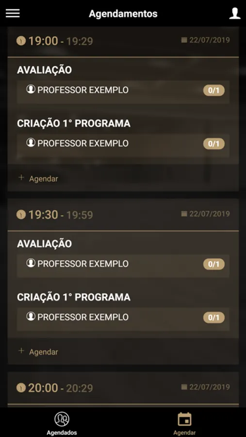 Aplicativo para o cliente acessar seus treinos, avaliações, gerenciar seus agendamentos e reservar aulas coletivas