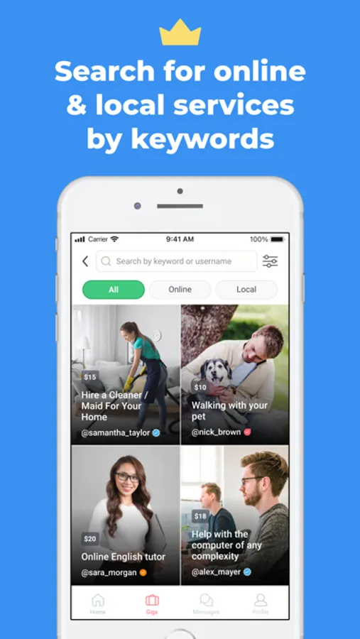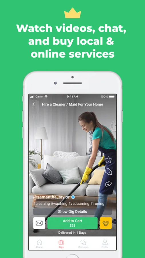 local--to meet your needs. Browse videos of service providers, message them, purchase their