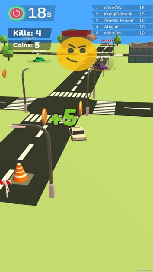 Avoid driving into any obstacles and red Area of cars. you should hit the cars in green Area.