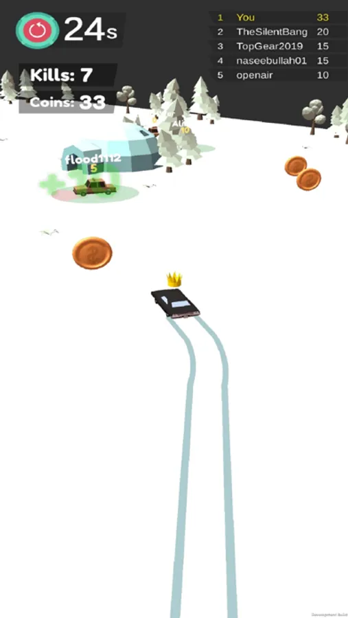 Drive your car through the island. earn coin, upgrade your car and buy new ones. you can unlock and upgrade 9 different vehicles.