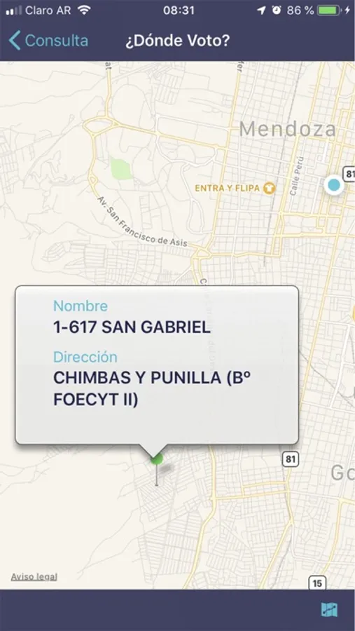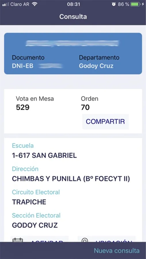 También posee la posibilidad de ver la ubicación geográfica del lugar de votación y compartir los datos obtenidos a través de redes sociales.