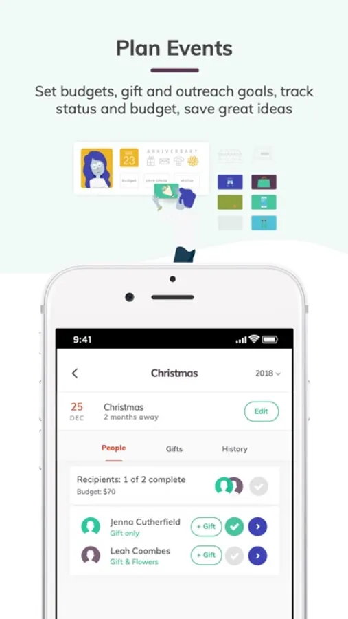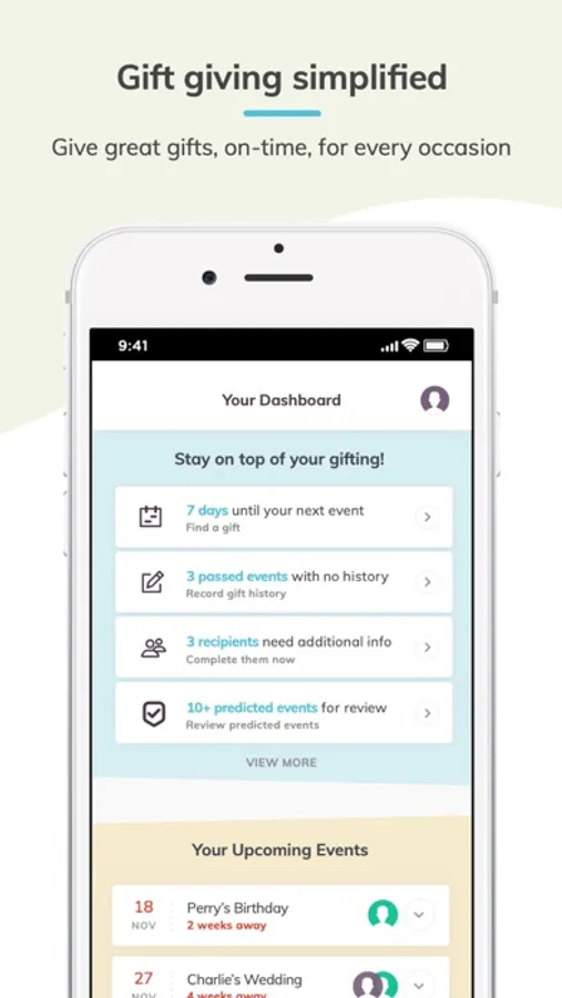Gift Guru is a gift calendar and discovery app to simplify all aspects of gift giving! Track birthdays and recipients, get event reminders, save gift ideas and history, budget, and more!