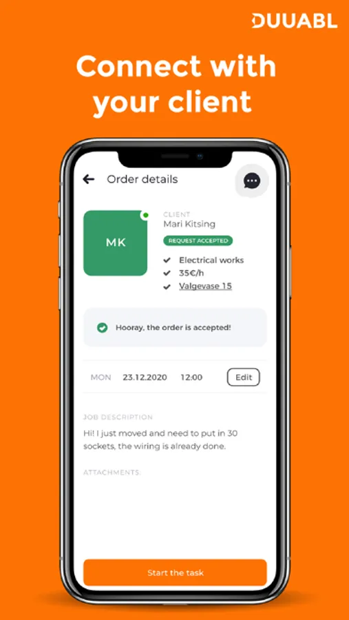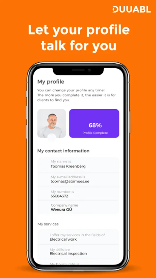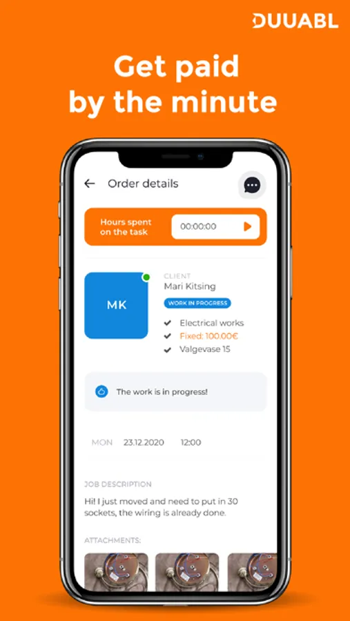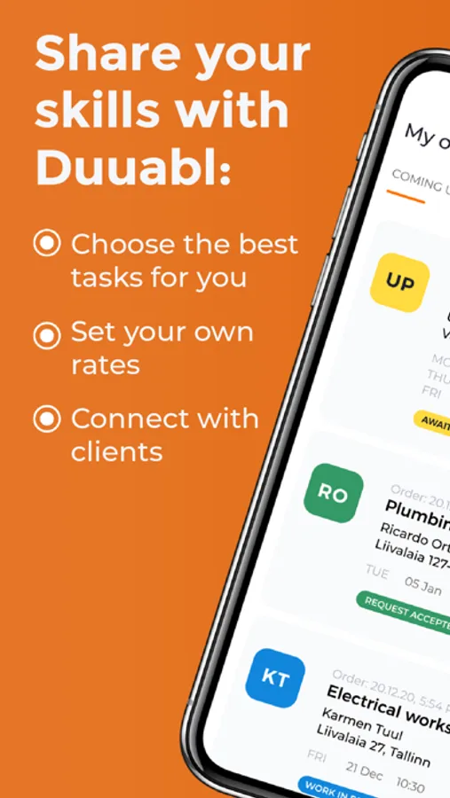 Pane oma oskused Duuabl Tegijana proovile ning määra oma tasu, tööaeg ja -koht ise! Alusta oma ettevõtluse teekonda või kasvata oma äri koos Duuabl platvormiga. Leia lihtsalt sulle sobivad tööotsad, teeni korralikku sissetulekut ja saa osa Duuabl tulevikuväärtusest.