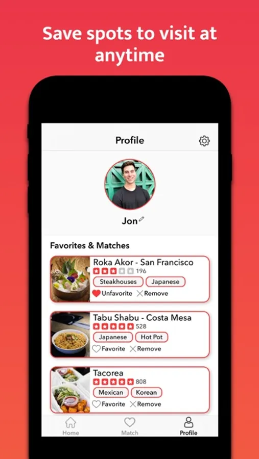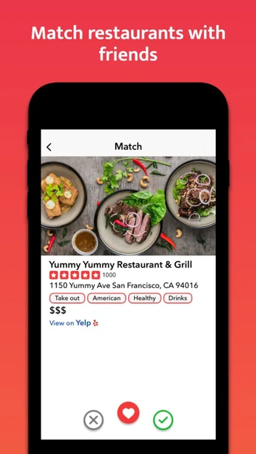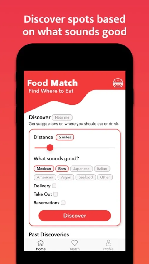 Finding new places to eat or drink has never been easier. Food Match allows you to discover new spots based on what sounds good to you.