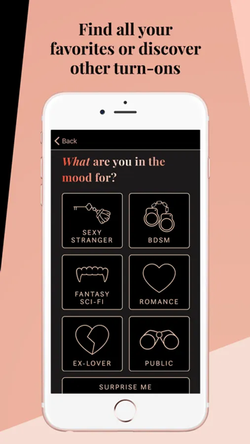 Choose who you want to play as (and with!), if you prefer romantic or dirty talk, and decide where each story takes you. Our library is always growing with popular erotic sub-genres like romance, public, sexy stranger, ex-lover, and sci-fi / fantasy.