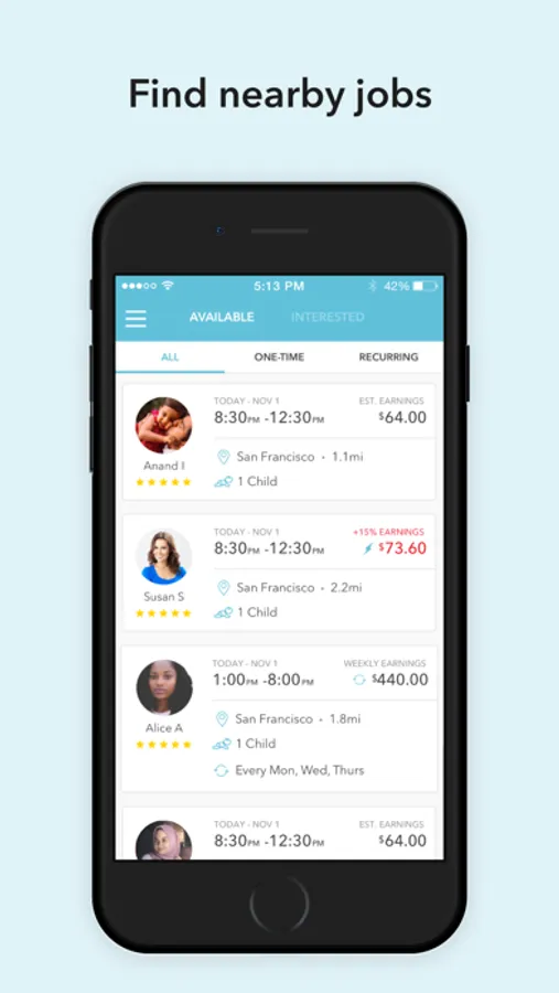 We enable you to choose when and how long you work. Provide us with your available time blocks and we will fill them by finding great families for you to work with. You can also look through our open listings to find the job that’s right for you. After each completed job, you can rate and review the family. Build your reputation to level up and earn more money. Never wonder if, when, or how you’ll get paid; we direct deposit to your bank account.