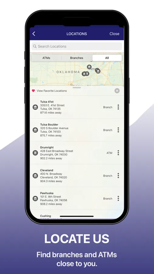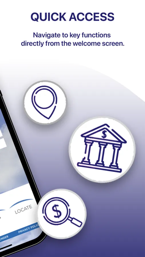 - Find nearby Branches and ATMs using the built-in GPS. Additionally, you can search by zip code or address.