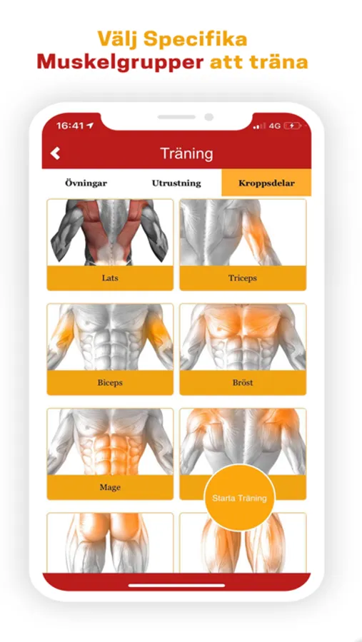 Olika träningsövningar anpassade efter specifika muskelgrupper, du väljer själv vad du vill träna! På sätt och vis gör det möjligt för dig att kunna utforma ett eget träningspass med de muskelgrupper du vill lägga mer fokus på.