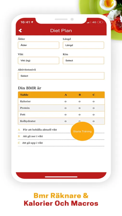 Du kan räkna ut BMI, kalorier, Macros och näringsvärden med hjälp av appen.