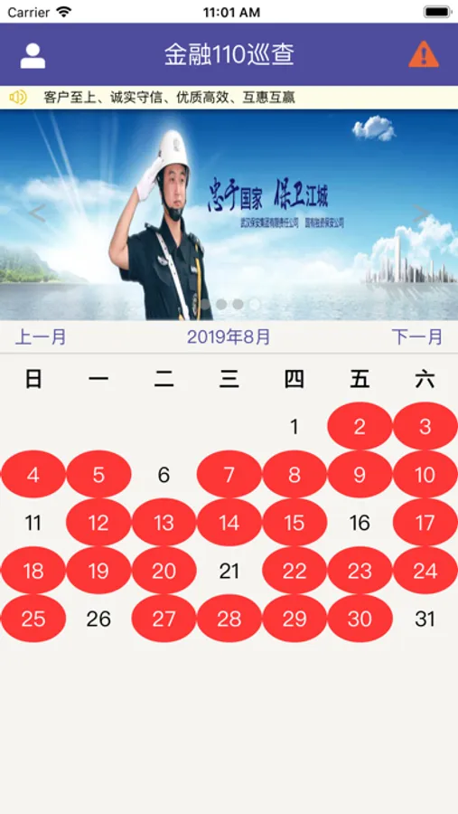 金融巡查APP是一款显示巡逻员排班日期及排班内容的APP。