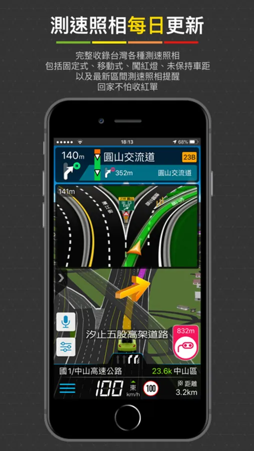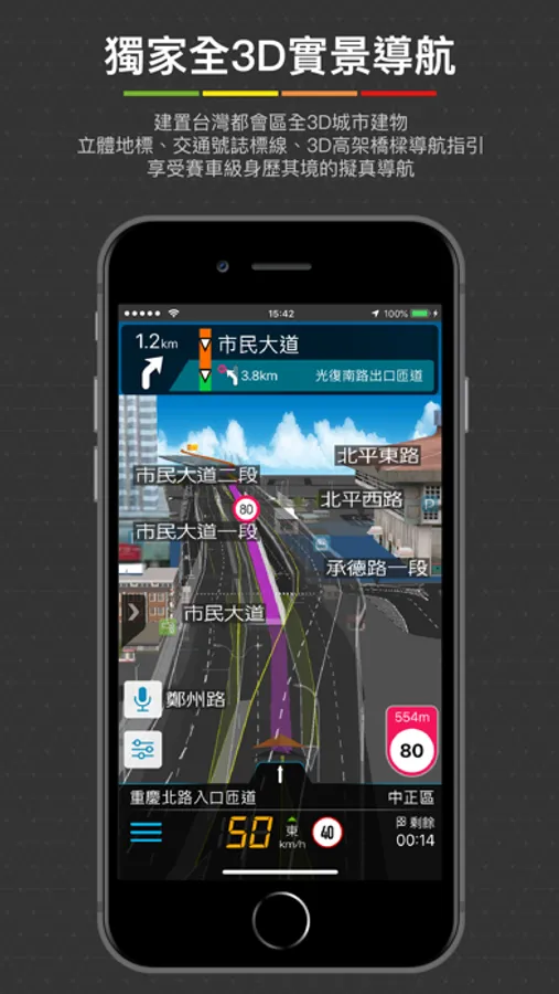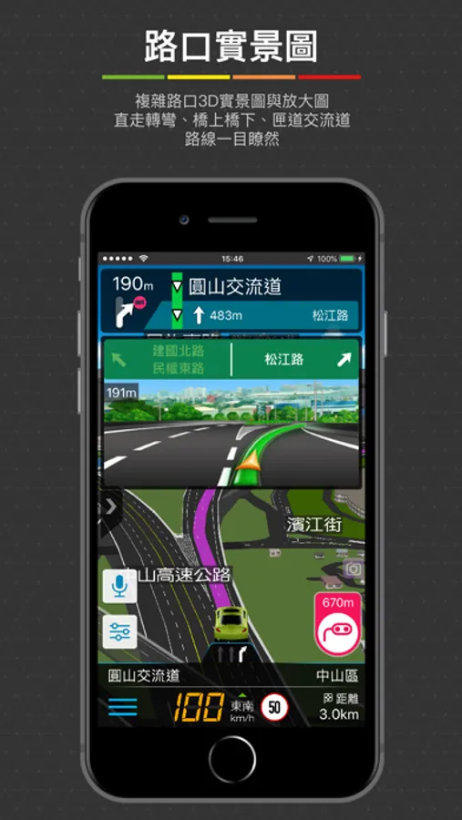 ● 獨家3D立體高架橋樑,清楚的高架道路指引,上下橋一目了然。