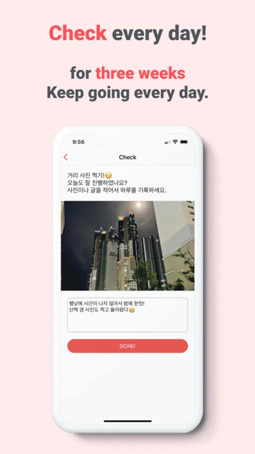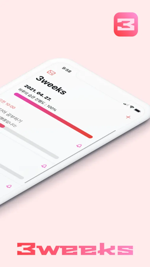 The 3weeks app is a habit-making app that checks users' habits, records schedules, and provides tips to improve them every day. This allows users to create a better life on their own, feel the joy of habituation through rewards, and use it with confidence through privacy. Let's start the 3-week challenge together!