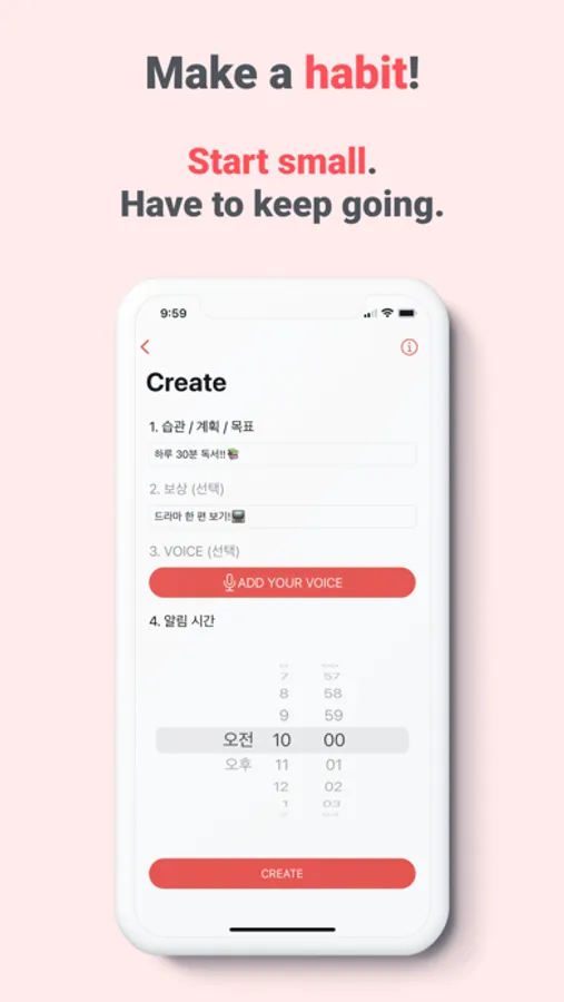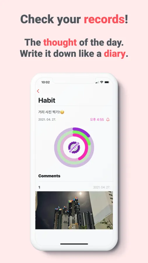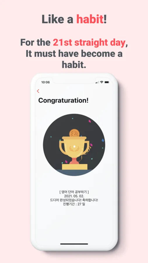This app helps you overcome the difficult moments you feel in the process of creating a habit. It also provides the persistence and consistency needed to create habits. In the process of creating a habit, you can also gain motivation to help you make a habit by writing a diary.