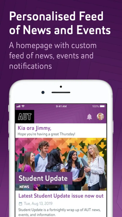 With the official AUT App, you have access to up-to-date news, events and information about AUT anytime, anywhere. New tools and functionality allow you to navigate student life at AUT both physically and virtually.