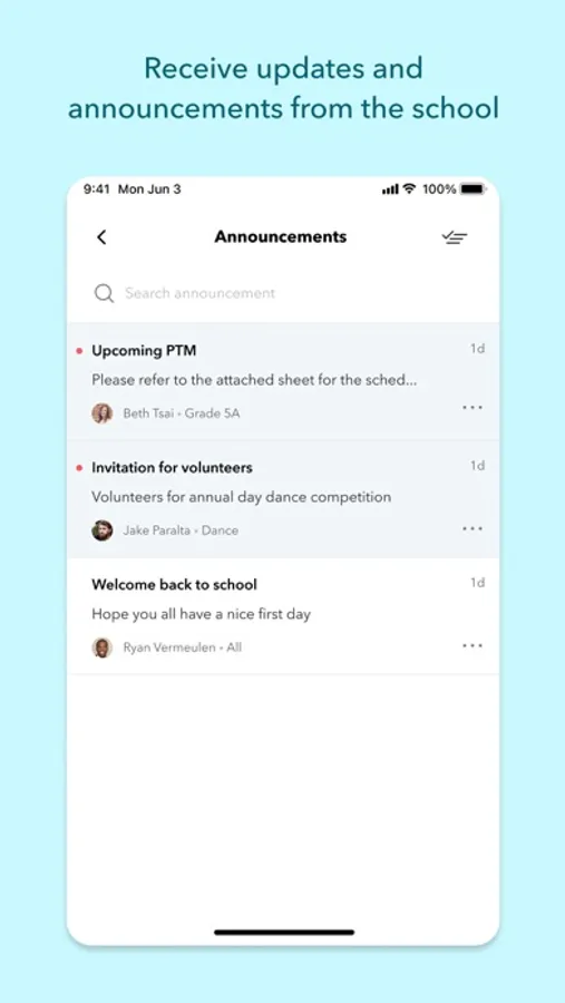 * Easily view all school announcements, notifications, messages and more