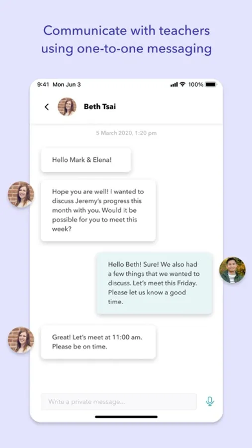 * Have one-on-one conversations with school teachers (this is a restricted feature: if you don’t see this, please contact your school administrator)