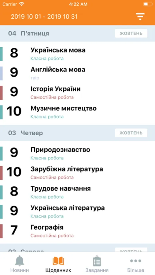 • Домашні завдання – дізнайтесь, які завдання потрібно виконати у найближчий час.