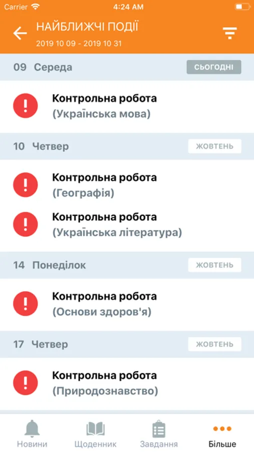 • Календар найближчих подій – контрольні роботи, батьківські збори, канікули дітей відображаються в одному робочому вікні.