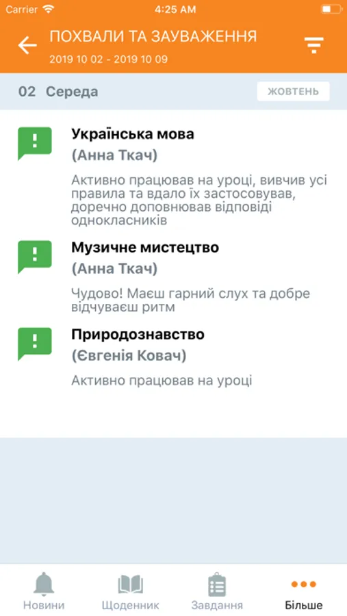 • Похвали, зауваження – слідкуйте не лише за оцінками, але й за похвалами та зауваженнями.