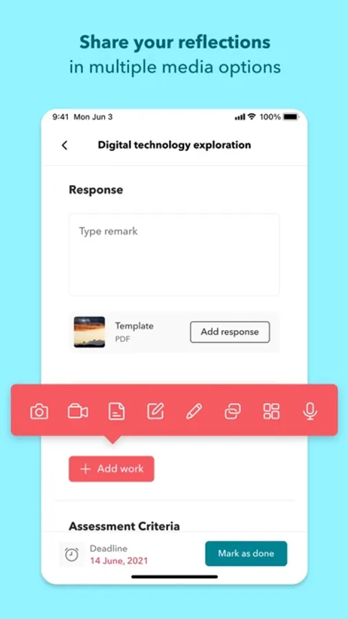 * Document your learning journey in the form of photos, videos, galleries, audio notes, etc.