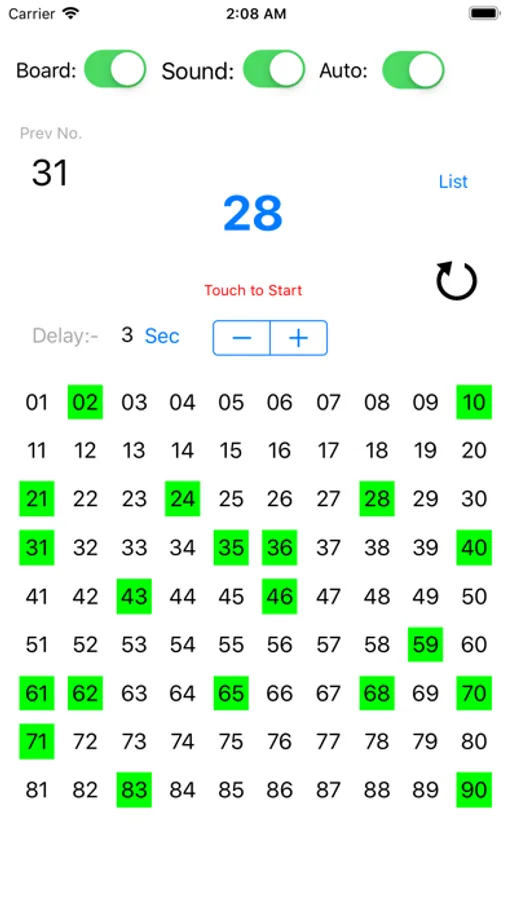 1) The Caller needs to generate a random number if Number matches in below numbers ,number colour green to indicate numbers.