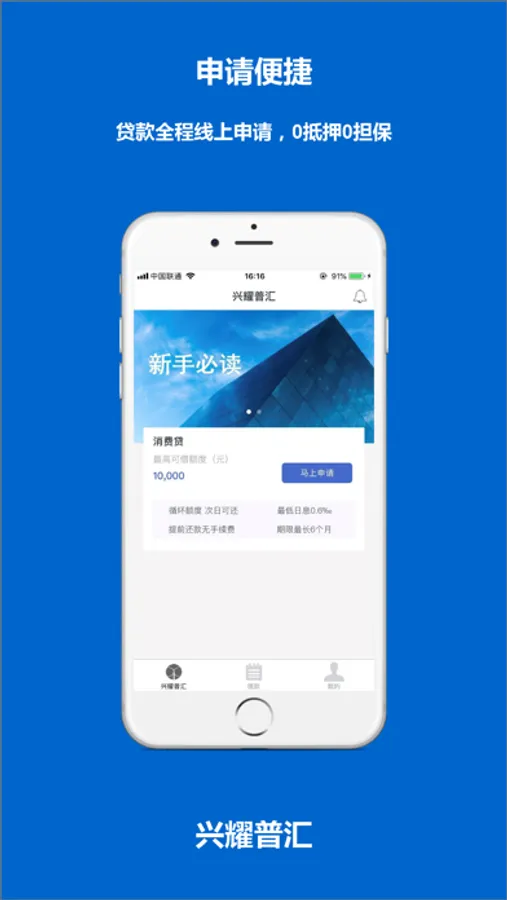 “兴耀普汇”是德清金汇小额贷款有限公司的一款产品。“兴耀普汇”仅需客户完成认证,填写个人信息即可获取额度,全自动风控,帮助用户享受到更便捷的借贷服务。