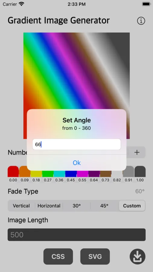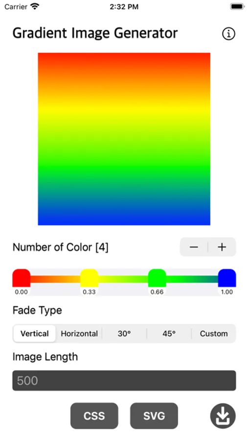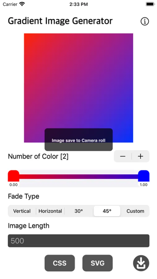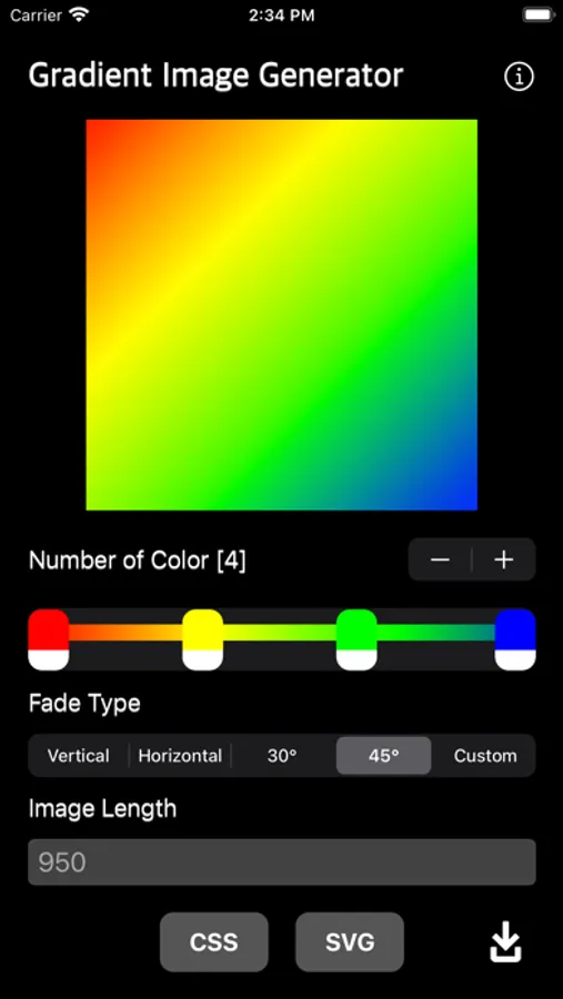 Gradient Image Generator generate 3 types of gradient image. CSS3 Codes, SVG Codes and Images. with instant previewing so you get exactly what you had in mind.