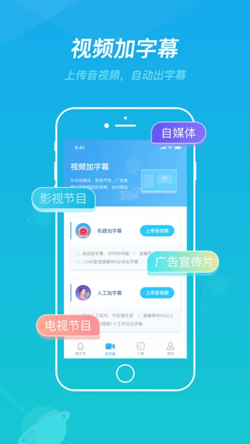 蓝色脉动提供"录音转文字"、"视频加字幕"两大服务,具有准确率高、速度快、费用低、功能全等特点。