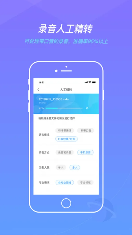 针对音质清晰,发音标准的录音,运用先进的语音识别和自然语音理解技术进行转写,1小时录音最快5分钟出稿,还可自动区分说话人。