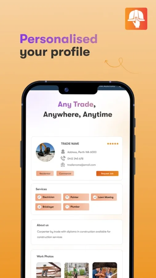 Build a reputable profile as a Tradie by adding photos, bio, specialties, work history, portfolio, and more. Complete jobs with the utmost professionalism and on time to earn five-star ratings. A good work profile with lots of positive feedback increases your chances to get hired when you apply for job requests.