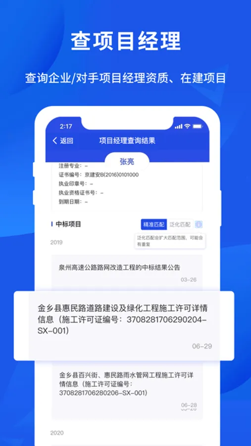 【查项目经理】查询项目经理资质、业绩,已绑定在建项目信息尽在掌握;