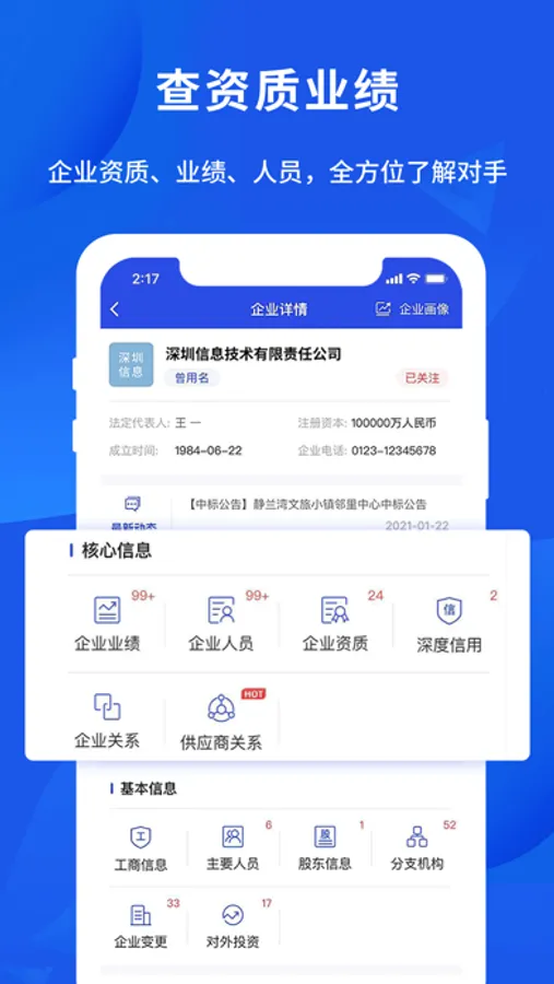 【企业资质业绩】精准查询全国企业业绩、资质、人员,全方位了解对手;